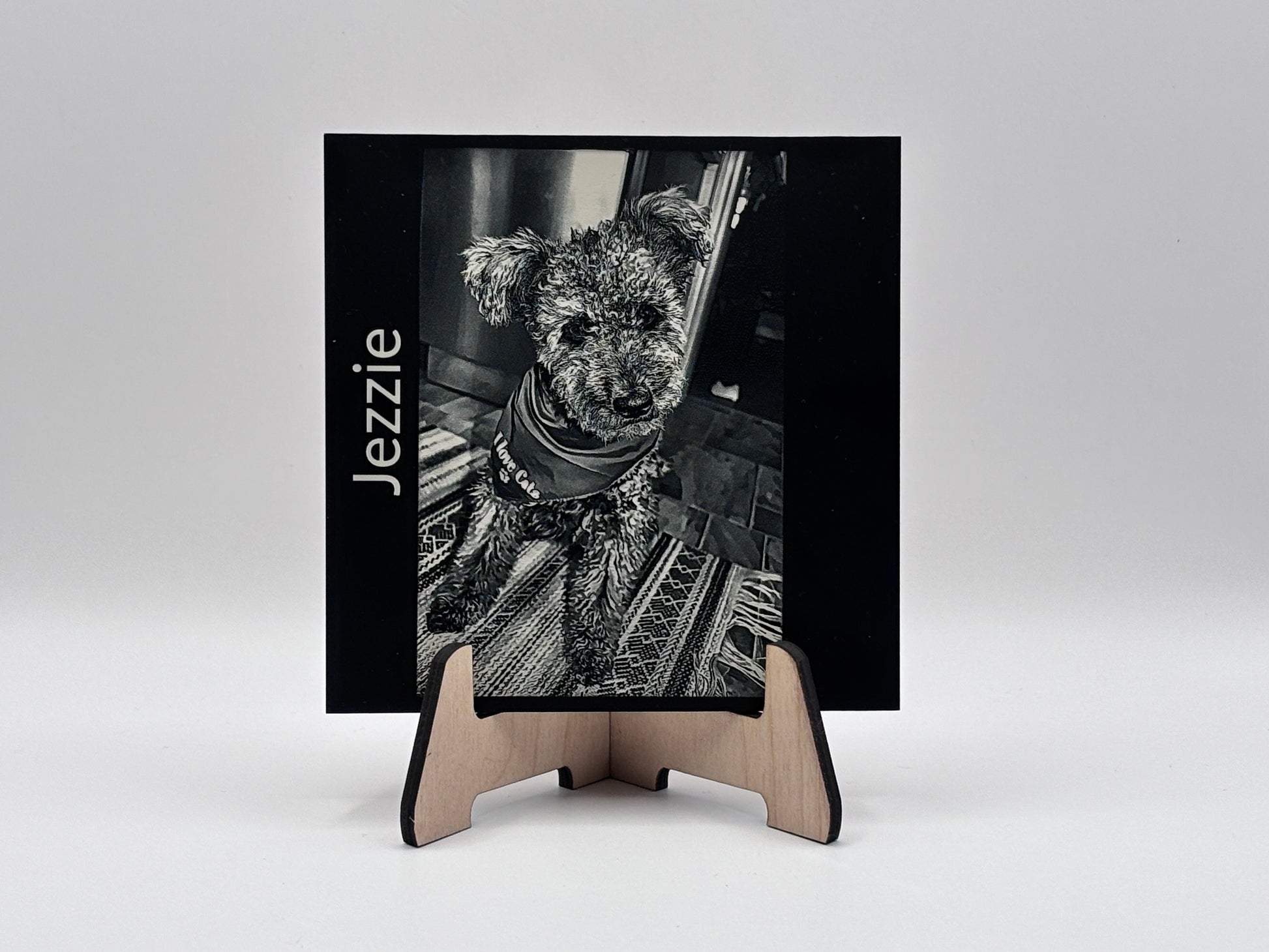 Personal photo engraving on acrylic – with wooden stand